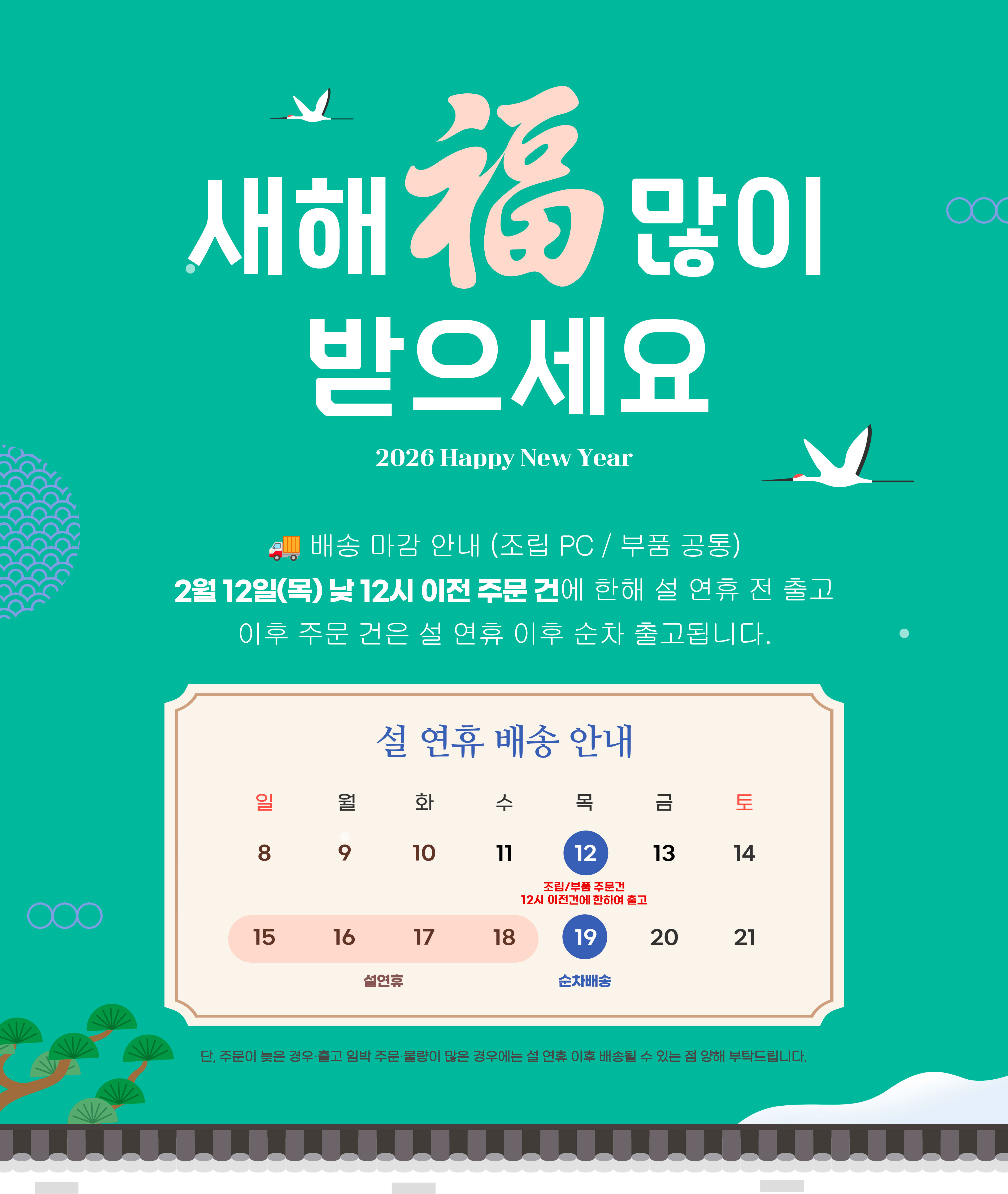 <공지사항> 설 연휴 배송안내