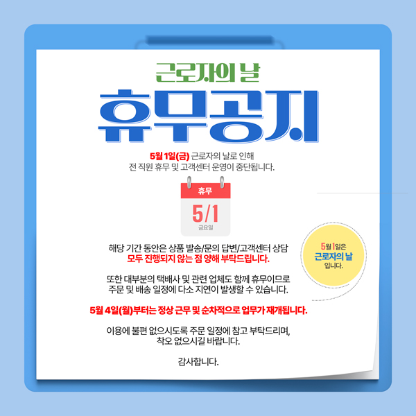 <공지사항>근로자의 날 휴무 안내