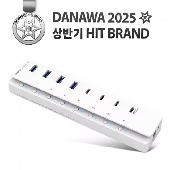 USB 허브 / 8포트 / USB3.x 10Gbps / PC연결 단자:Type A / 케이블분리형 / 1m / 외부전원겸용 / 어댑터포함 / 개별ON/OFF스위치 / LED표시등 / 플러그앤플레이 / 핫스왑 / 퀵차지 / [허브기능] / USB허브 수:7포트 / 지원속도:USB3.x 10Gbps / USB확장단자:USB C타입,USB A타입 / [충전기능] / 충전전용:1포트 / USB C타입